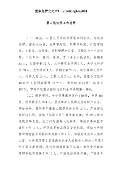 【七哥公文】2025年:县人民法院工作总结+更多免费公文+VX:QiGeGongWen2024+更多免费公文+VX:QiGeGongWen2024