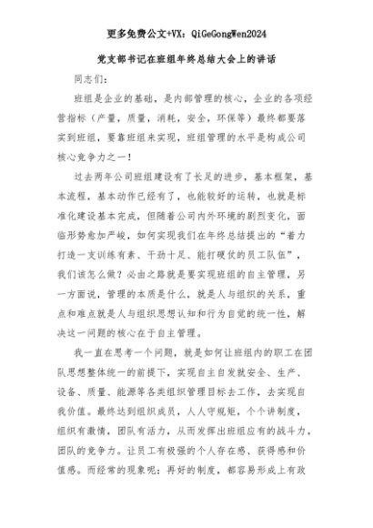 【七哥公文】2025年:党支部书记在班组年终总结大会上的讲话+更多免费公文+VX:QiGeGongWen2024+更多免费公文+VX:QiGeGongWen2024
