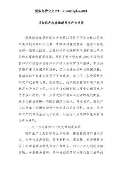 【七哥公文】2025年:以知识产权助推新质生产力发展+更多免费公文+VX:QiGeGongWen2024+更多免费公文+VX:QiGeGongWen2024