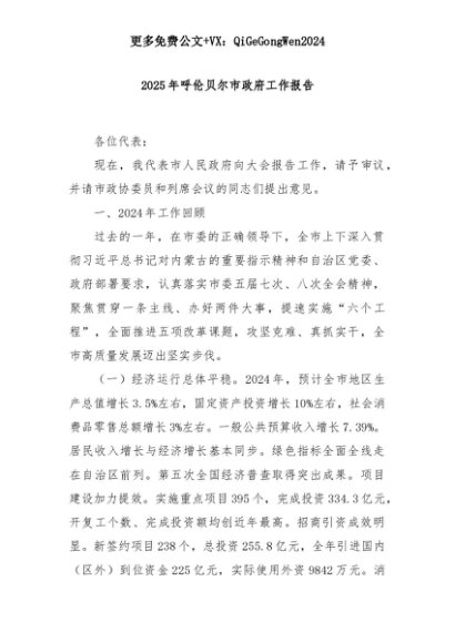 【七哥公文】2025年:2025年呼伦贝尔市政府工作报告+更多免费公文+VX:QiGeGongWen2024+更多免费公文+VX:QiGeGongWen2024