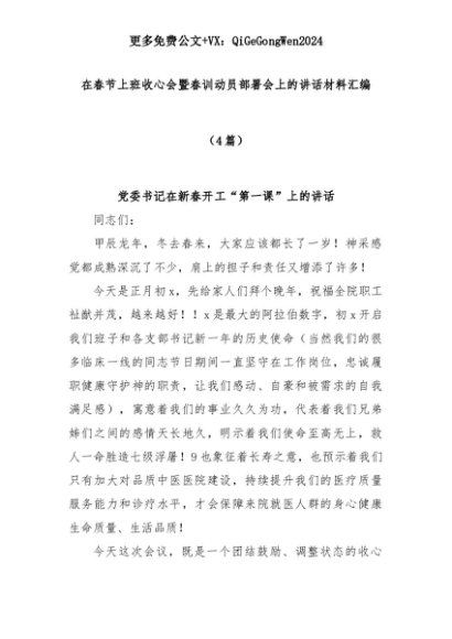 【七哥公文】2025年:(4篇)在春节上班收心会暨春训动员部署会上的讲话材料汇编+更多免费公文+VX:QiGeGongWen2024+更多免费公文+VX:QiGeGongWen2024