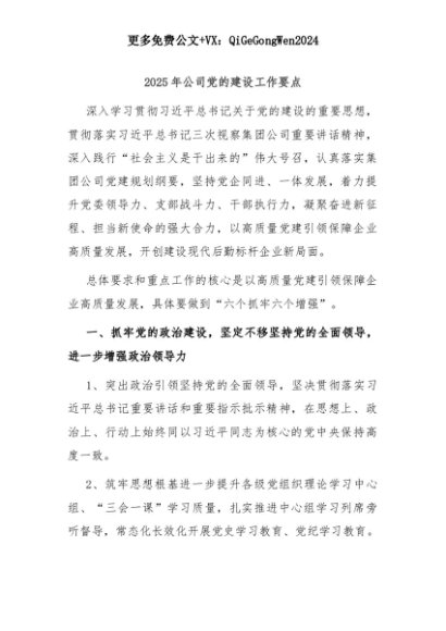 【七哥公文】2025年:2025年公司党的建设工作要点+更多免费公文+VX:QiGeGongWen2024+更多免费公文+VX:QiGeGongWen2024