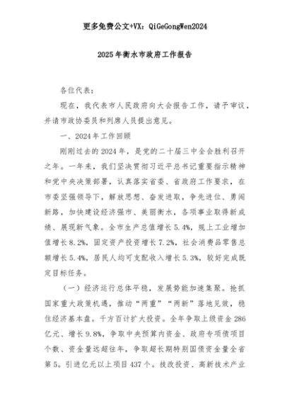 【七哥公文】2025年:2025年衡水市政府工作报告+更多免费公文+VX:QiGeGongWen2024+更多免费公文+VX:QiGeGongWen2024