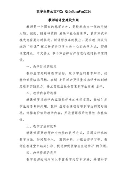 【七哥公文】2025年:教师新课堂建设方案+更多免费公文+VX:QiGeGongWen2024+更多免费公文+VX:QiGeGongWen2024
