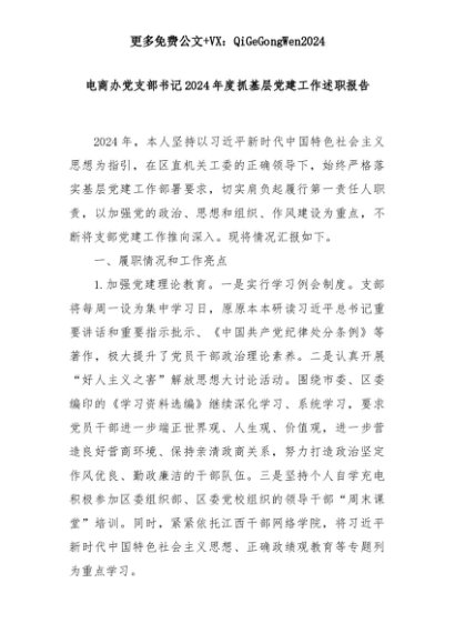 【七哥公文】2025年:电商办党支部书记2024年度抓基层党建工作述职报告+更多免费公文+VX:QiGeGongWen2024+更多免费公文+VX:QiGeGongWen2024