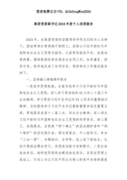 【七哥公文】2025年:集团党委副书记2024年度个人述职报告+更多免费公文+VX:QiGeGongWen2024+更多免费公文+VX:QiGeGongWen2024