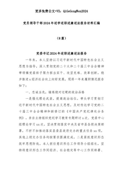 【七哥公文】2025年:(8篇)党员领导干部2024年述学述职述廉述法报告材料汇编+更多免费公文+VX:QiGeGongWen2024+更多免费公文+VX:QiGeGongWen2024