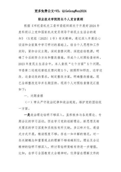 【七哥公文】2025年:职业技术学院院长个人发言提纲+更多免费公文+VX:QiGeGongWen2024+更多免费公文+VX:QiGeGongWen2024