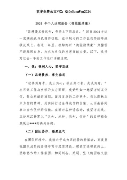 【七哥公文】2025年:2024 年个人述职报告(德能勤绩廉)+更多免费公文+VX:QiGeGongWen2024+更多免费公文+VX:QiGeGongWen2024