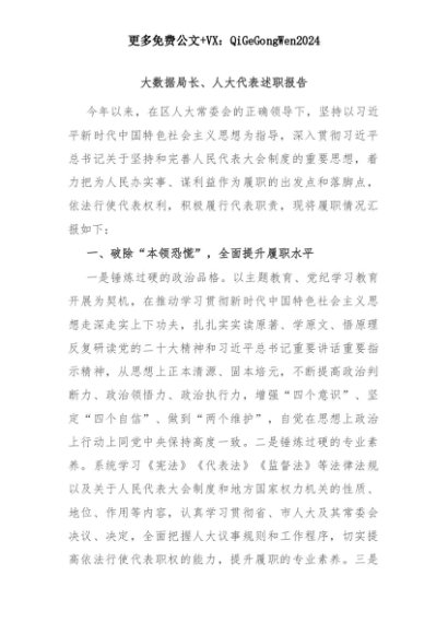 【七哥公文】2025年:大数据局长、人大代表述职报告+更多免费公文+VX:QiGeGongWen2024+更多免费公文+VX:QiGeGongWen2024