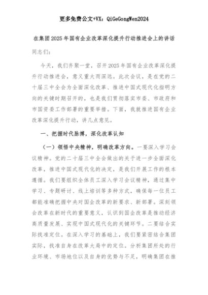 【七哥公文】2025年:在集团2025年国有企业改革深化提升行动推进会上的讲话+更多免费公文+VX:QiGeGongWen2024+更多免费公文+VX:QiGeGongWen2024