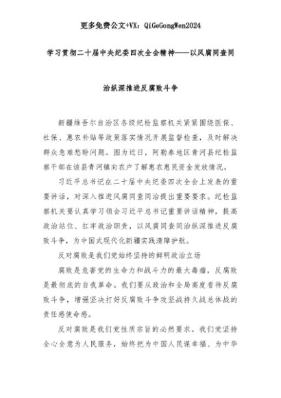 【七哥公文】2025年:学习贯彻二十届中央纪委四次全会精神——以风腐同查同治纵深推进反腐败斗争+更多免费公文+VX:QiGeGongWen2024+更多免费公文+VX:QiGeGongWen2024