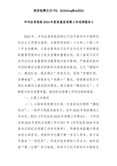 【七哥公文】2025年:市司法局党组2024年度抓基层党建工作述职报告2+更多免费公文+VX:QiGeGongWen2024+更多免费公文+VX:QiGeGongWen2024