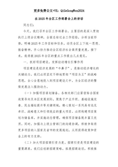 【七哥公文】2025年:在2025年全区工作部署会上的讲话+更多免费公文+VX:QiGeGongWen2024+更多免费公文+VX:QiGeGongWen2024