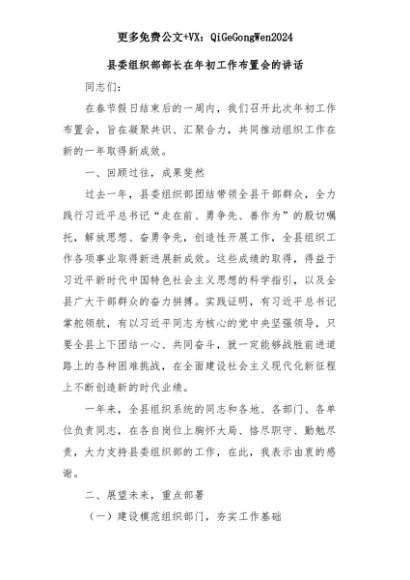 【七哥公文】2025年:县委组织部部长在年初工作布置会的讲话+更多免费公文+VX:QiGeGongWen2024+更多免费公文+VX:QiGeGongWen2024