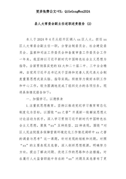 【七哥公文】2025年:县人大常委会副主任述职述责报告 (2)+更多免费公文+VX:QiGeGongWen2024+更多免费公文+VX:QiGeGongWen2024