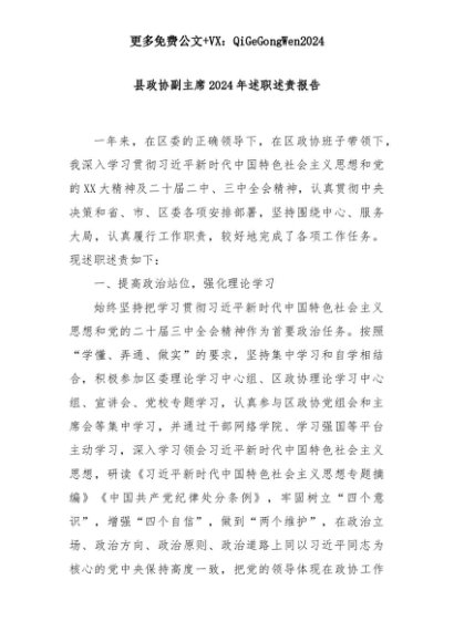 【七哥公文】2025年:县政协副主席2024年述职述责报告+更多免费公文+VX:QiGeGongWen2024+更多免费公文+VX:QiGeGongWen2024