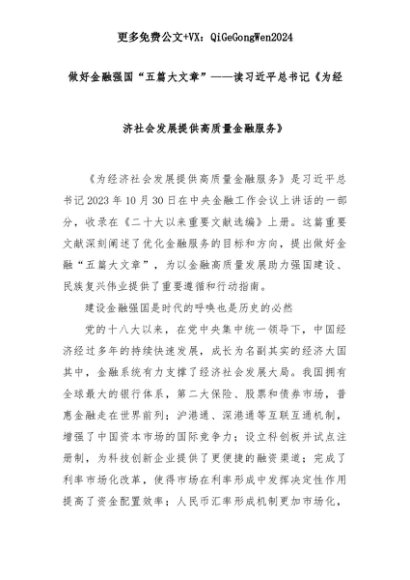 【七哥公文】2025年:做好金融强国“五篇大文章”——读总书记《为经济社会发展提供高质量金融服务》+更多免费公文+VX:QiGeGongWen2024+更多免费公文+VX:QiGeGongWen2024