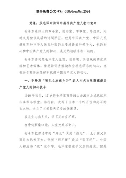 【七哥公文】2025年:党课:从毛泽东诗词中感悟共产党人初心使命+更多免费公文+VX:QiGeGongWen2024+更多免费公文+VX:QiGeGongWen2024
