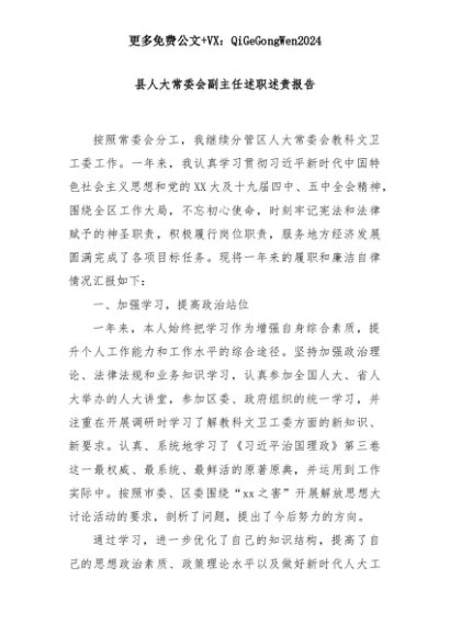 【七哥公文】2025年:县人大常委会副主任述职述责报告+更多免费公文+VX:QiGeGongWen2024+更多免费公文+VX:QiGeGongWen2024
