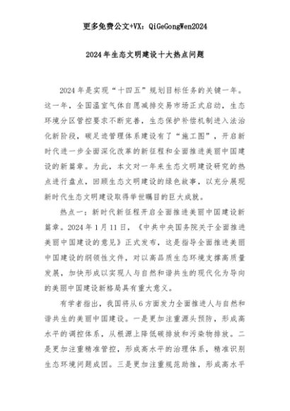 【七哥公文】2025年:2024年生态文明建设十大热点问题+更多免费公文+VX:QiGeGongWen2024+更多免费公文+VX:QiGeGongWen2024