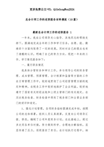【七哥公文】2025年:(10篇)总会计师工作的述职报告材料模板+更多免费公文+VX:QiGeGongWen2024+更多免费公文+VX:QiGeGongWen2024