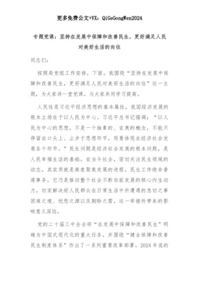 【七哥公文】2025年:专题党课:坚持在发展中保障和改善民生,更好满足人民对美好生活的向往+更多免费公文+VX:QiGeGongWen2024+更多免费公文+VX:QiGeGongWen2024