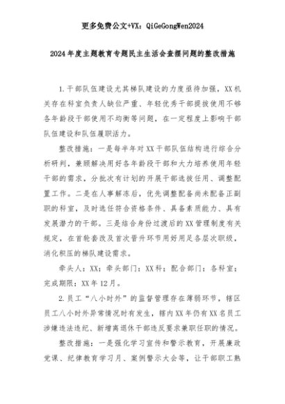 【七哥公文】2025年:2024年度主题教育专题民主生活会查摆问题的整改措施+更多免费公文+VX:QiGeGongWen2024+更多免费公文+VX:QiGeGongWen2024