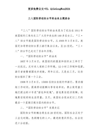 【七哥公文】2025年:三八国际劳动妇女节的由来主题班会+更多免费公文+VX:QiGeGongWen2024+更多免费公文+VX:QiGeGongWen2024