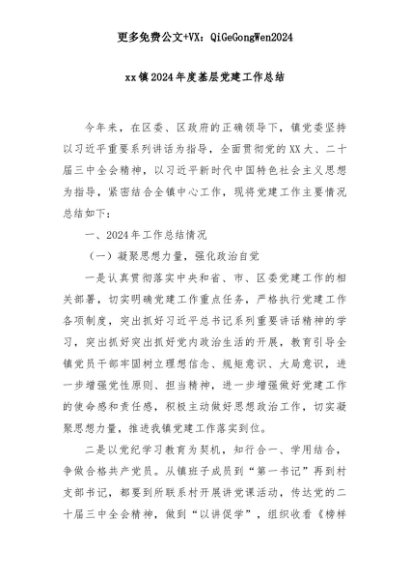 【七哥公文】2025年:xx镇2024年度基层党建工作总结+更多免费公文+VX:QiGeGongWen2024+更多免费公文+VX:QiGeGongWen2024