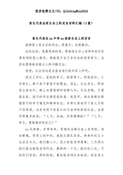 【七哥公文】2025年:(3篇)家长代表在家长会上的发言材料汇编+更多免费公文+VX:QiGeGongWen2024+更多免费公文+VX:QiGeGongWen2024