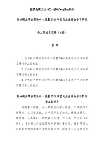 【七哥公文】2025年:(3篇)政协副主席在理论中心组暨2024年度民主生活会学习研讨会上的发言汇编+更多免费公文+VX:QiGeGongWen2024+更多免费公文+VX:QiGeGongWen2024