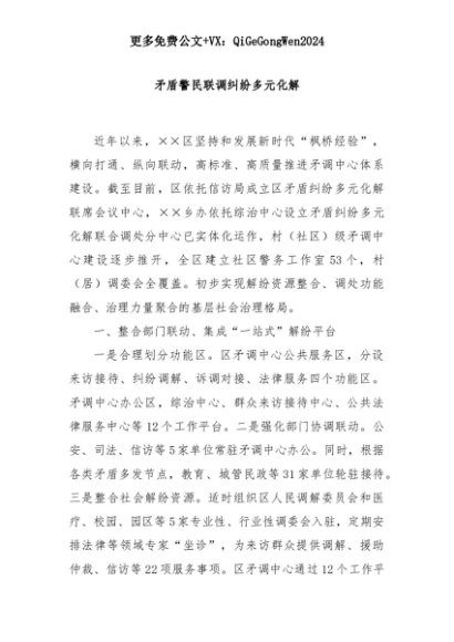【七哥公文】2025年:矛盾警民联调纠纷多元化解+更多免费公文+VX:QiGeGongWen2024+更多免费公文+VX:QiGeGongWen2024