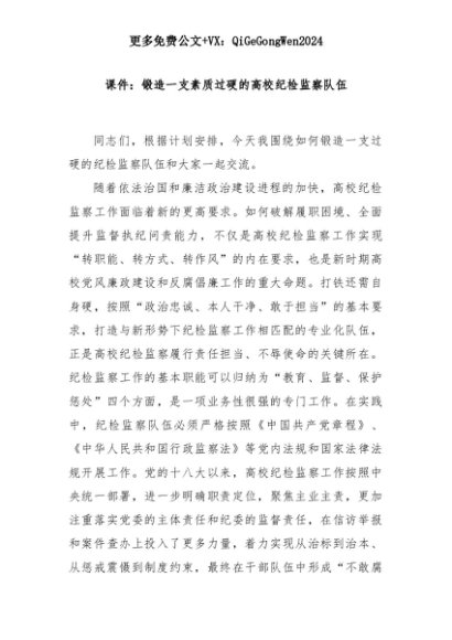 【七哥公文】2025年:课件:锻造一支素质过硬的高校纪检监察队伍+更多免费公文+VX:QiGeGongWen2024+更多免费公文+VX:QiGeGongWen2024
