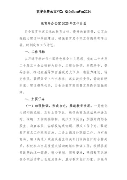 【七哥公文】2025年:教育局办公室2025年工作计划+更多免费公文+VX:QiGeGongWen2024+更多免费公文+VX:QiGeGongWen2024