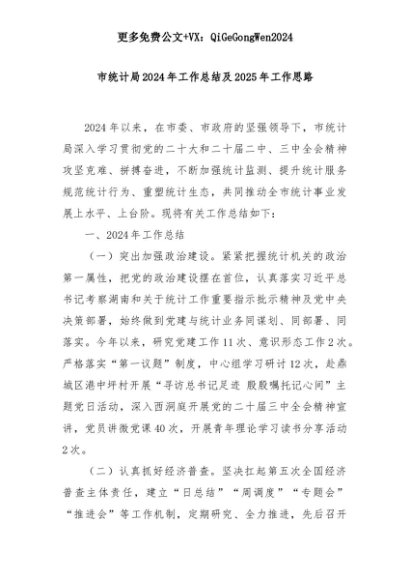【七哥公文】2025年:市统计局2024年工作总结及2025年工作思路+更多免费公文+VX:QiGeGongWen2024+更多免费公文+VX:QiGeGongWen2024