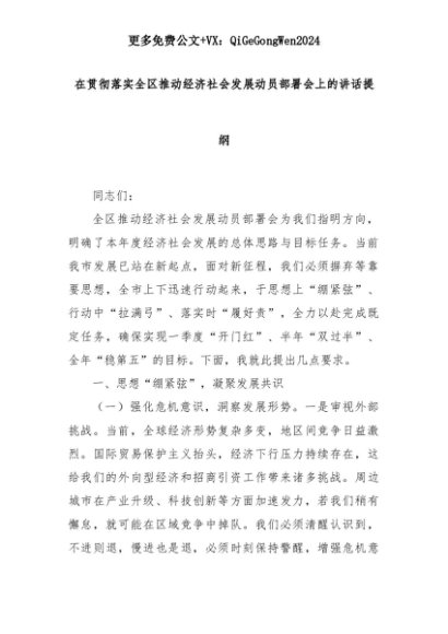 【七哥公文】2025年:在贯彻落实全区推动经济社会发展动员部署会上的讲话提纲+更多免费公文+VX:QiGeGongWen2024+更多免费公文+VX:QiGeGongWen2024