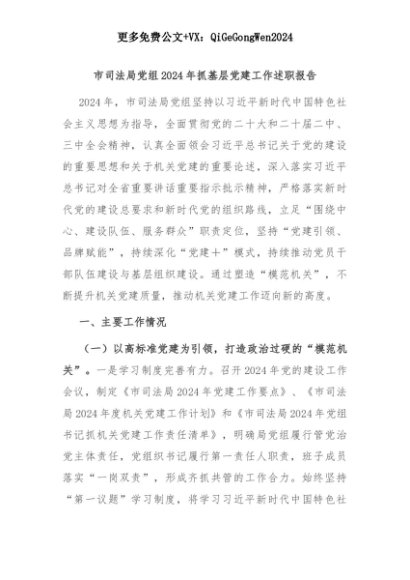 【七哥公文】2025年:市司法局党组2024年抓基层党建工作述职报告+更多免费公文+VX:QiGeGongWen2024+更多免费公文+VX:QiGeGongWen2024