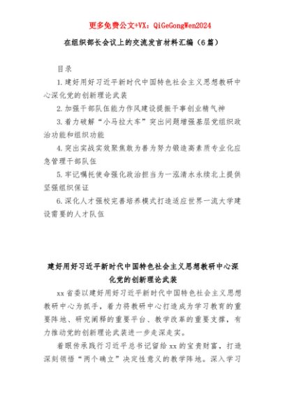 【七哥公文】2025年:(6篇)在组织部长会议上的交流发言材料汇编+更多免费公文+VX:QiGeGongWen2024+更多免费公文+VX:QiGeGongWen2024