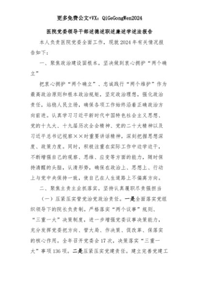 【七哥公文】2025年:医院党委领导干部述德述职述廉述学述法报告+更多免费公文+VX:QiGeGongWen2024+更多免费公文+VX:QiGeGongWen2024