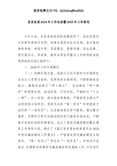 【七哥公文】2025年:县发改委2024年工作总结暨2025年工作谋划+更多免费公文+VX:QiGeGongWen2024+更多免费公文+VX:QiGeGongWen2024