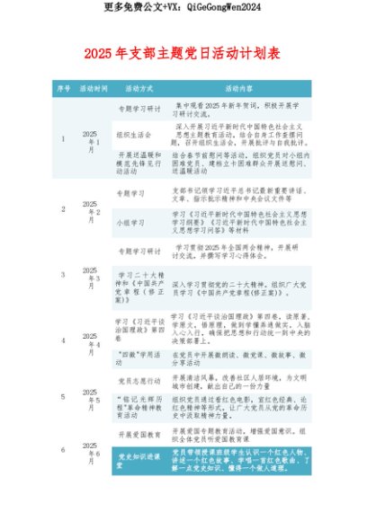 【七哥公文】2025年:(3篇)2025年党支部主题党日活动三会一课计划表+更多免费公文+VX:QiGeGongWen2024+更多免费公文+VX:QiGeGongWen2024