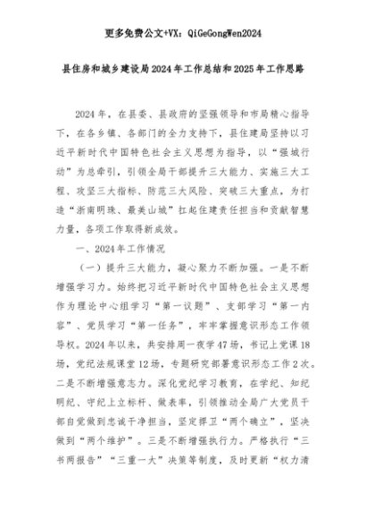 【七哥公文】2025年:县住房和城乡建设局2024年工作总结和2025年工作思路+更多免费公文+VX:QiGeGongWen2024+更多免费公文+VX:QiGeGongWen2024