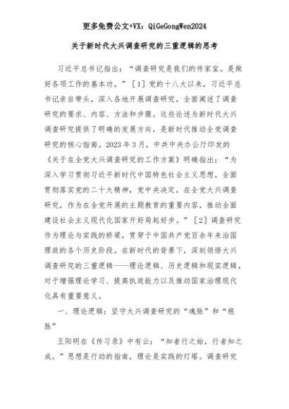 【七哥公文】2025年:关于新时代大兴调查研究的三重逻辑的思考+更多免费公文+VX:QiGeGongWen2024+更多免费公文+VX:QiGeGongWen2024