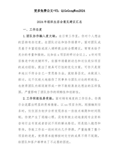 【七哥公文】2025年:2024年组织生活会意见建议汇总+更多免费公文+VX:QiGeGongWen2024+更多免费公文+VX:QiGeGongWen2024