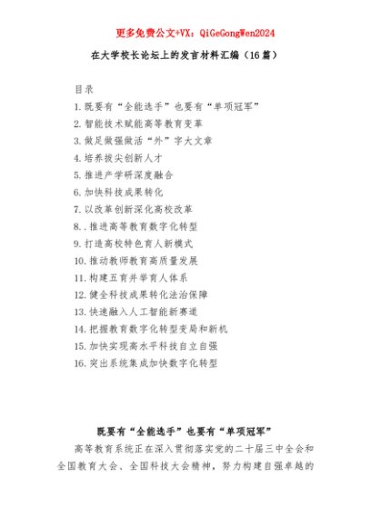 【七哥公文】2025年:(16篇)在大学校长论坛上的发言材料汇编+更多免费公文+VX:QiGeGongWen2024+更多免费公文+VX:QiGeGongWen2024