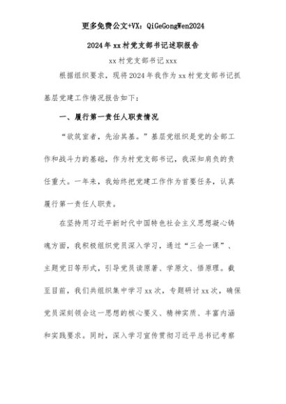 【七哥公文】2025年:2024年度xx村书记述职报告(详细版)+更多免费公文+VX:QiGeGongWen2024+更多免费公文+VX:QiGeGongWen2024
