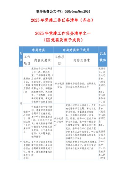 【七哥公文】2025年:2025年党建工作任务清单+更多免费公文+VX:QiGeGongWen2024+更多免费公文+VX:QiGeGongWen2024