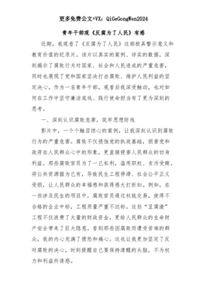 【七哥公文】2025年:青年干部观《反腐为了人民》有感+更多免费公文+VX:QiGeGongWen2024+更多免费公文+VX:QiGeGongWen2024