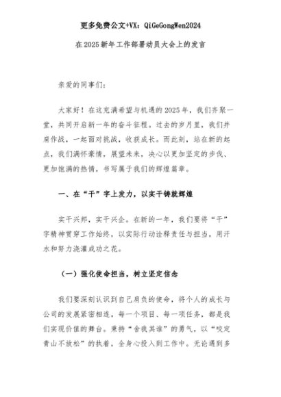 【七哥公文】2025年:在2025新年工作部署动员大会上的发言+更多免费公文+VX:QiGeGongWen2024+更多免费公文+VX:QiGeGongWen2024